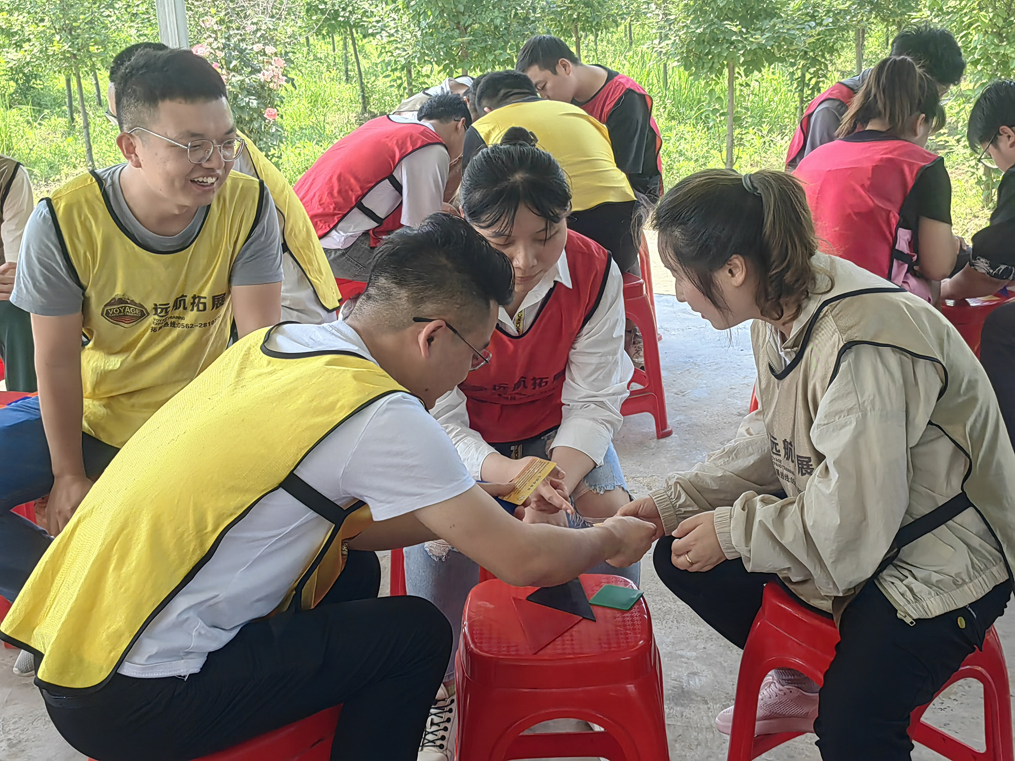 團(tuán)建活動(dòng)中,青年員工分組參與,先后開展了“破冰游戲”“巧拼七色板”“自助燒烤”“真人CS對(duì)抗”等趣味團(tuán)建活動(dòng)?;顒?dòng)中大家團(tuán)結(jié)一心,吶喊助威,笑語(yǔ)連連,既有效釋放了工作壓力,加強(qiáng)了溝通交流,展示了青年員工們凝心聚力、團(tuán)結(jié)互助、青春洋溢的精氣神,又在寓教于樂中強(qiáng)化了青年員工責(zé)任擔(dān)當(dāng)、資源共享、分工合作、相互信任的團(tuán)隊(duì)協(xié)作意識(shí)。
