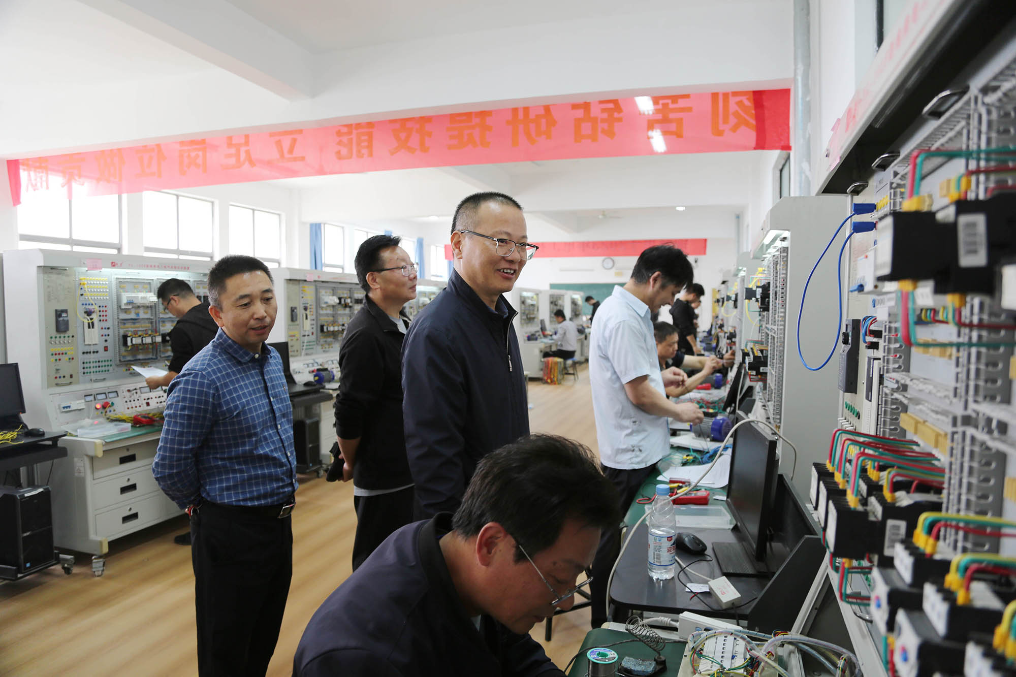 比武過(guò)程中,參賽選手不斷挑戰(zhàn)自己,表現(xiàn)出“穩(wěn)、準(zhǔn)”的精湛技藝和良好的心理素質(zhì)、安全意識(shí),展現(xiàn)了斗志昂揚(yáng)的精神風(fēng)貌。經(jīng)過(guò)激烈角逐,綜合兩個(gè)項(xiàng)目理論與實(shí)際操作考試成績(jī),最終決出叉車(chē)項(xiàng)目一等獎(jiǎng)1名,二獎(jiǎng)等2名,三等獎(jiǎng)3名,電工項(xiàng)目一、二、三等獎(jiǎng)各1名。